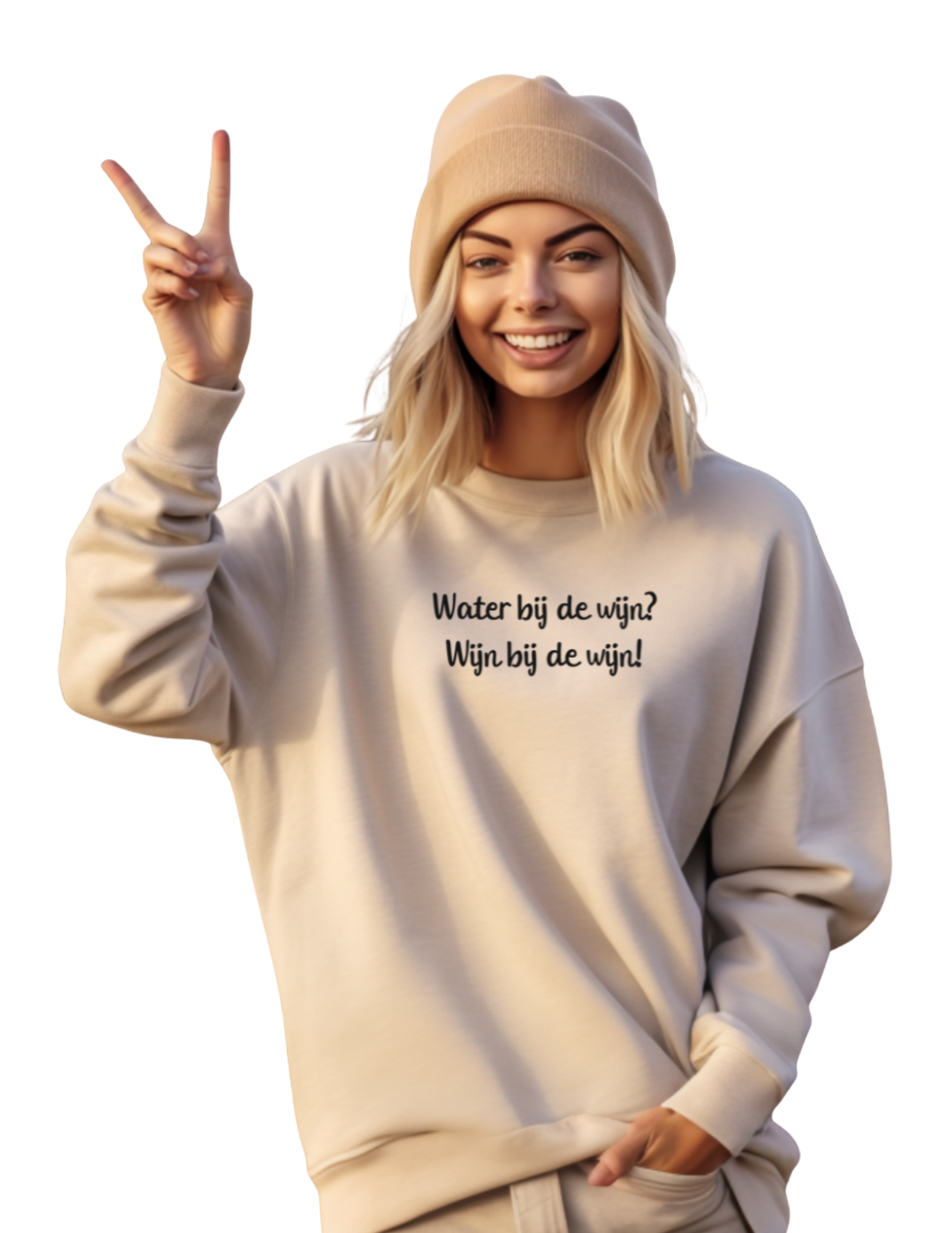 Trui met grappige quote Water bij de wijn? Wijn bij de wijn!